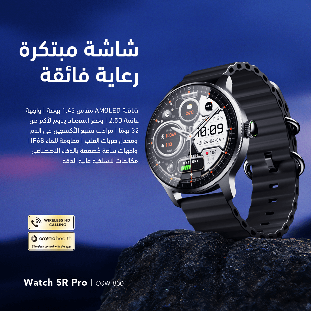 تتميز ساعة Watch 5R Pro بمراقبة صحية على مدار 24 ساعة، بما في ذلك معدل ضربات القلب، الأكسجين في الدم، تمارين التنفس، وتذكيرات بعدم الحركة. كن على دراية بحالتك البدنية من خلال بيانات الصحة اللحظية.