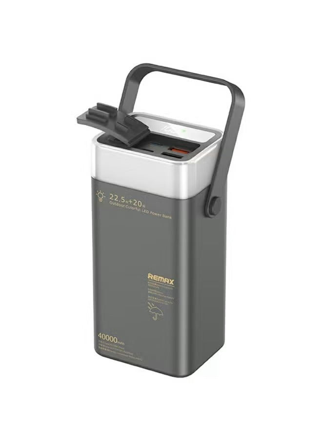 Power Bank 40000mAh , Outdoor Power Bank with 20W + 22.5W Fast Charging, RGB 360° LED Light, Smart Digital Display, and Carry Handle – white- RPP-596