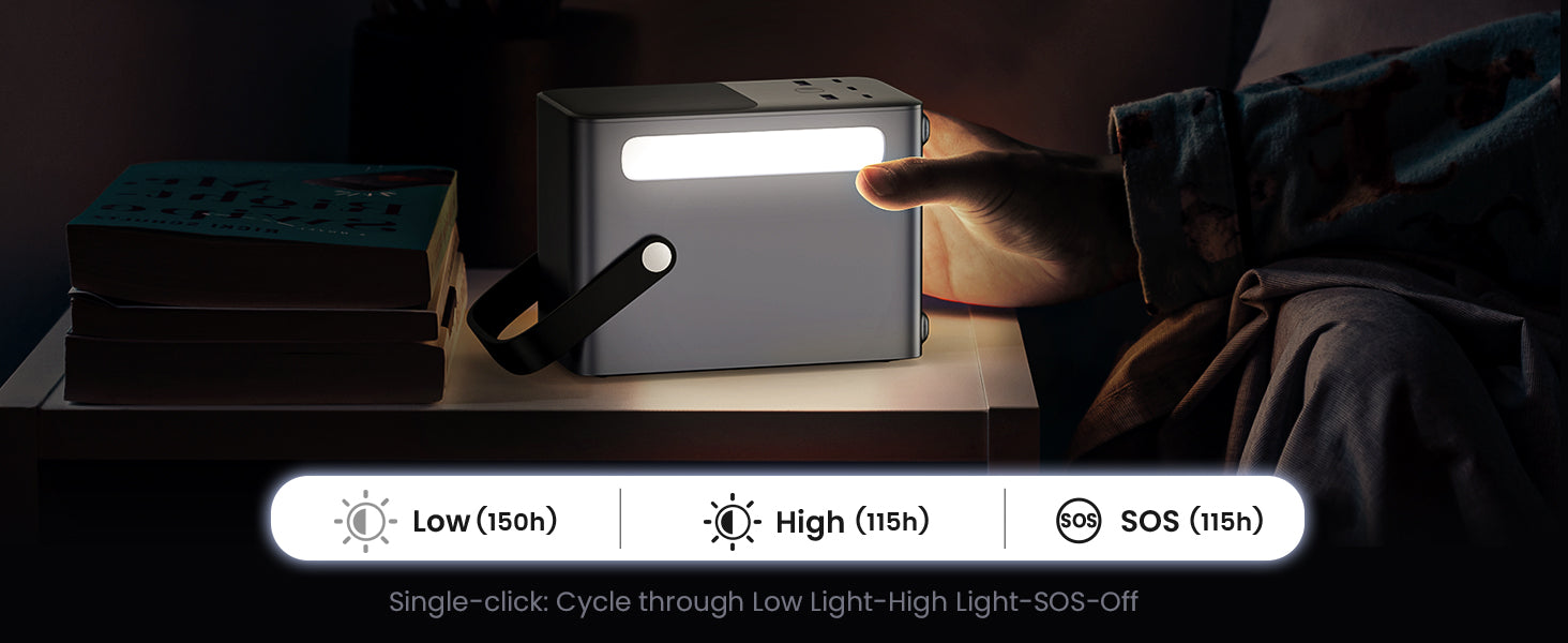 - Portable power bank: LED lights, high, low, SOS modes for emergencies.