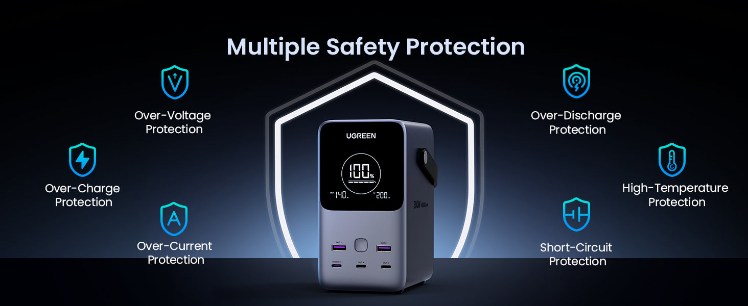 - UGREEN battery pack: Lifepo4 batteries, high safety, long life, 3,000 cycles.